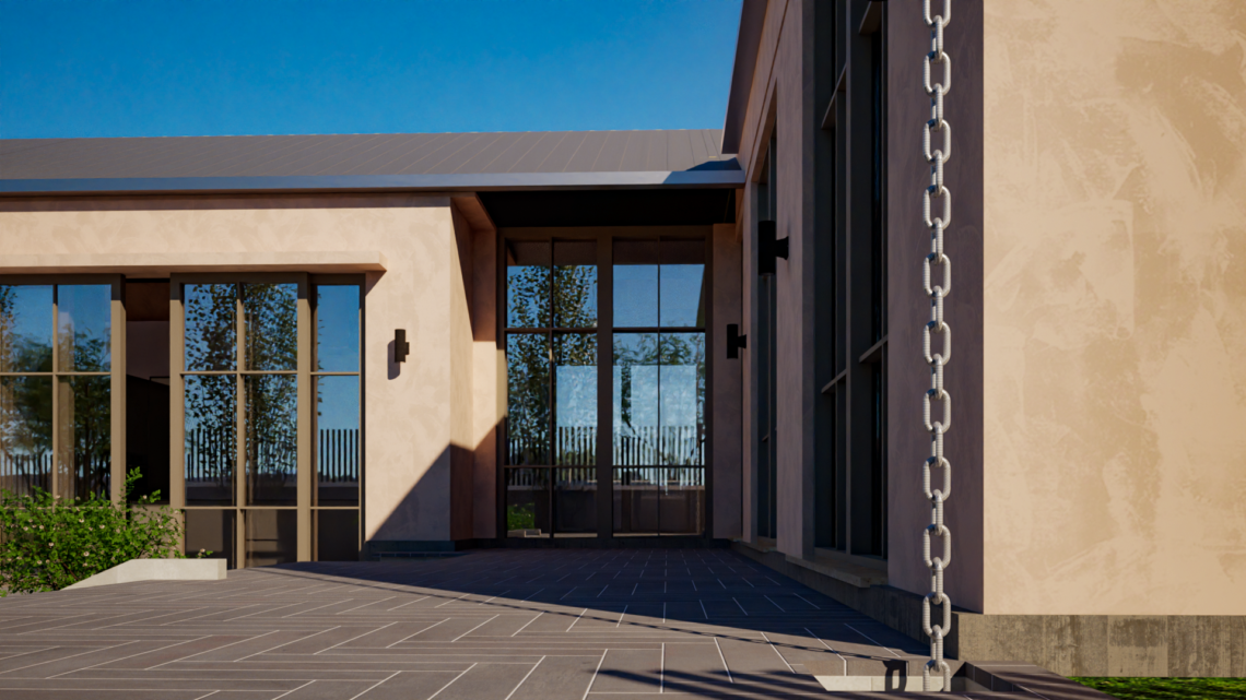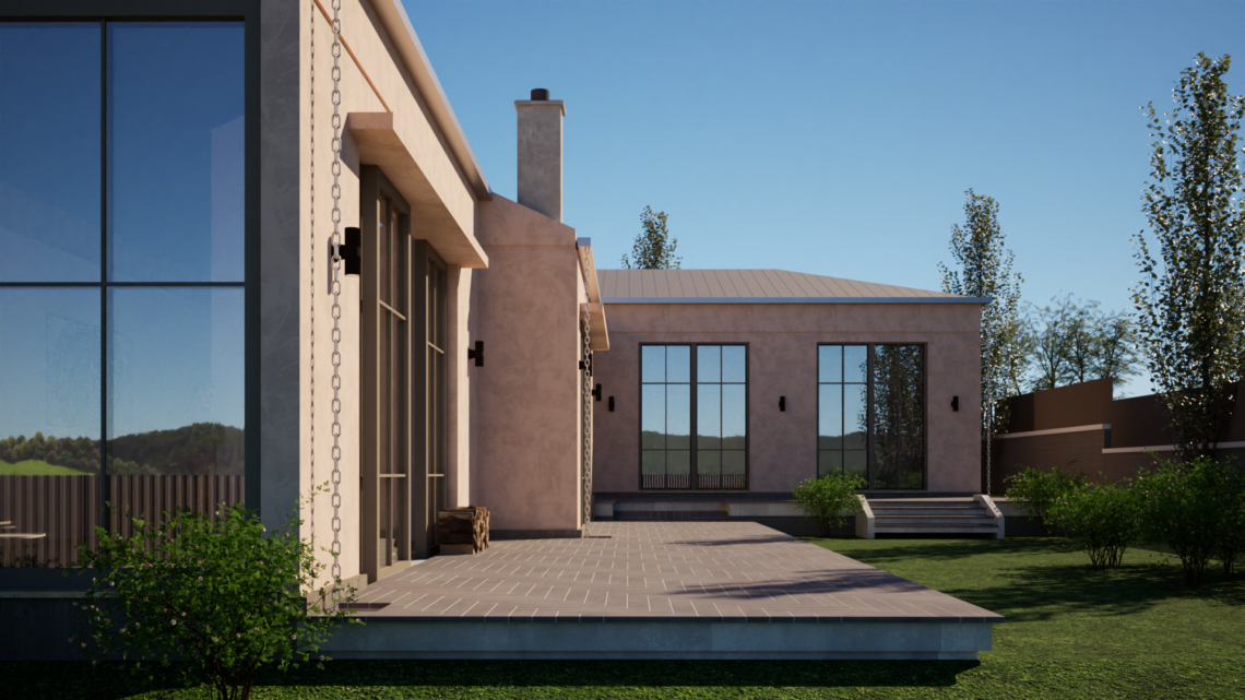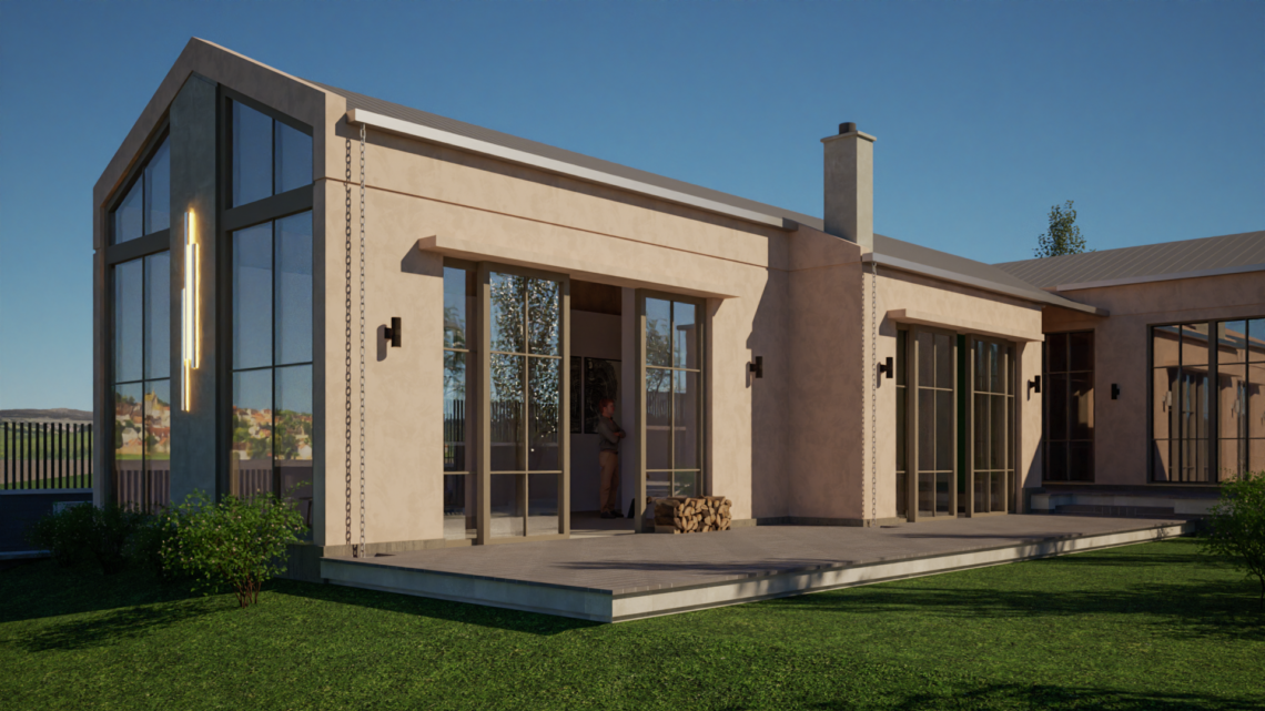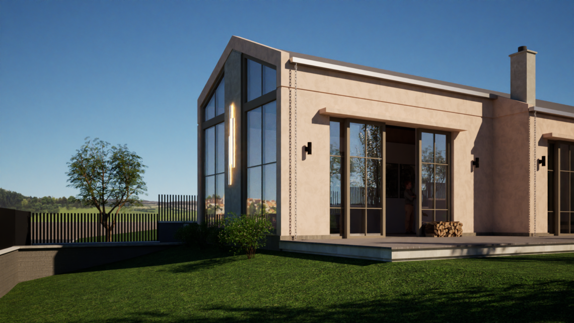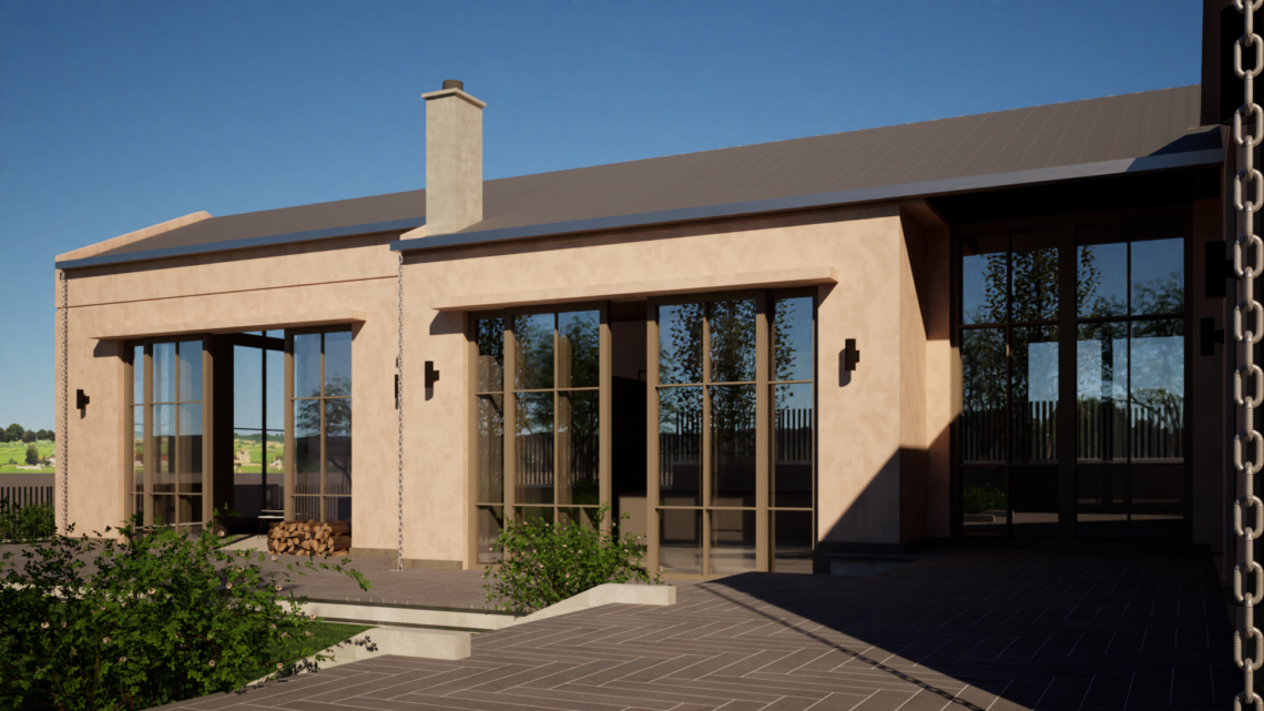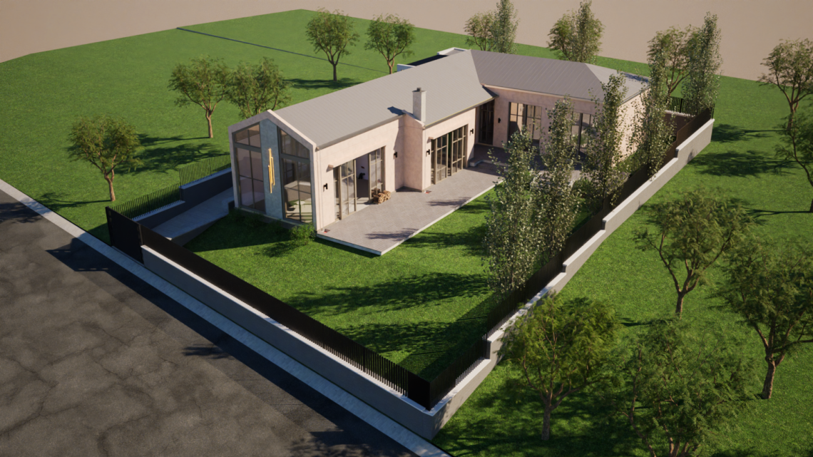 Tek katlı, çelik strüktürlü yapı araziye “L” formunda yerleşiyor, bu sayede gün ışığından maksimum seviyede yararlanılırken, tüm odalar bahçeye bakıyor. Villa, modern bir çelik yapı sistemiyle tasarlanmış olup, dayanıklılık ve hafiflik dengesini kusursuz şekilde kurar. Yapı, güneşin yönüne göre konumlandırılan yaşam alanlarıyla hem enerji verimliliği sağlar hem de doğayla ilişkili mekânlar yaratır. Mimari dil, yalınlığı öne çıkarırken detaylardaki incelikle estetik bir anlatı kurar.